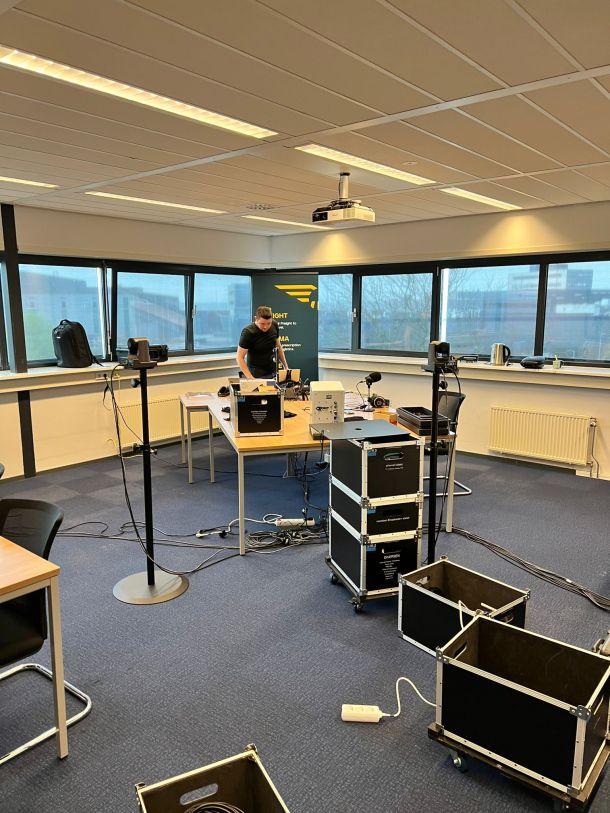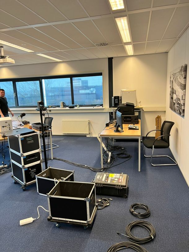 De studio wordt opgebouwd op een locatie naar jullie keuze (kantoor/receptie/showroom, etc.). De techniek wordt compleet verzorgd door ons technische team. Er wordt een online stream opgezet voor zowel audio als video; iedereen kan dus live meekijken in de studio.